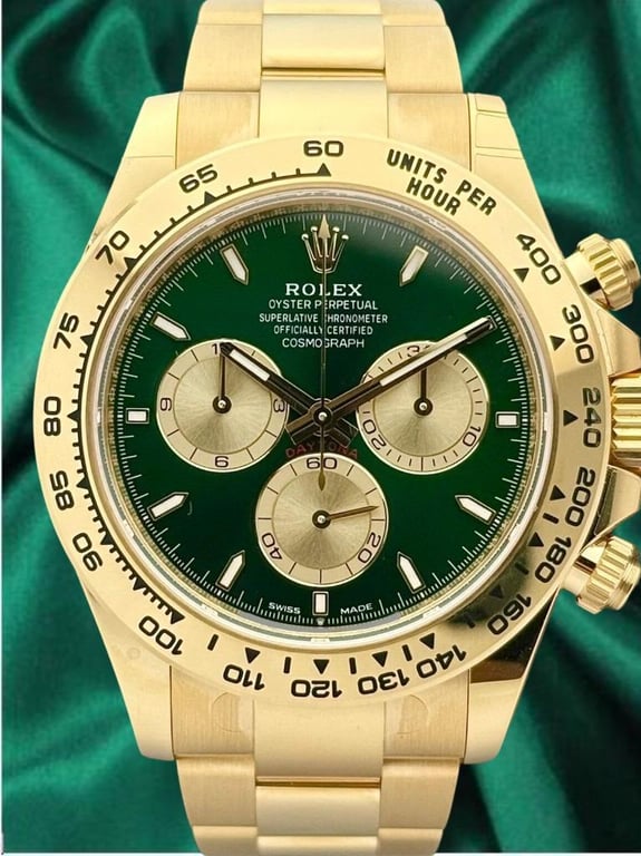 ROLEX COSMOGRAPH DAYTONA ‘JOHN MAYER’ YELLOW GOLD GREEN DIAL 126508 | 2025 | 40MMBrand : RolexReference : 126508Model : Cosmograph Daytona ‘John Mayer’Year : 2025Condition : UnwornCase Size : 40MmPower Reserve : 72HDial : GreenBezel : Yellow GoldCase : Yellow GoldBracelet : Yellow GoldPapers : YesBox : Yes488259+18