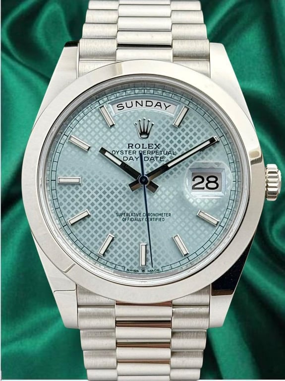 ROLEX DAY-DATE 40 PLATINUM PRESIDENT WAFFLE 228206 | 2021 | 40MMBrand : RolexReference : 228206Model : Day-Date 40Year : 2021Condition : MintCase Size : 40MmPower Reserve : 70HDial : BlueBezel : PlatinumCase : PlatinumBracelet : PlatinumPapers : YesBox : Yes488259+30