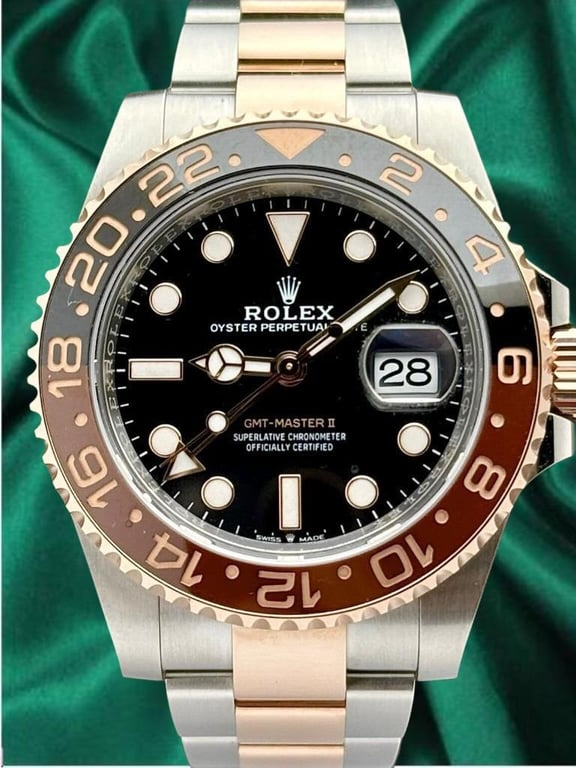 ROLEX GMT-MASTER II ROOTBEER TWO TONE EVEROSE OYSTER 126711CHNR | 2025 | 40MMBrand : RolexReference : 126711ChnrModel : Gmt-Master Ii RootbeerYear : 2025Condition : New/UnwornCase Size : 40MmPower Reserve : 70HDial : BlackBezel : CeramicCase : Rose Gold/SteelBracelet : Rose Gold/SteelPapers : YesBox : Yes488259+31