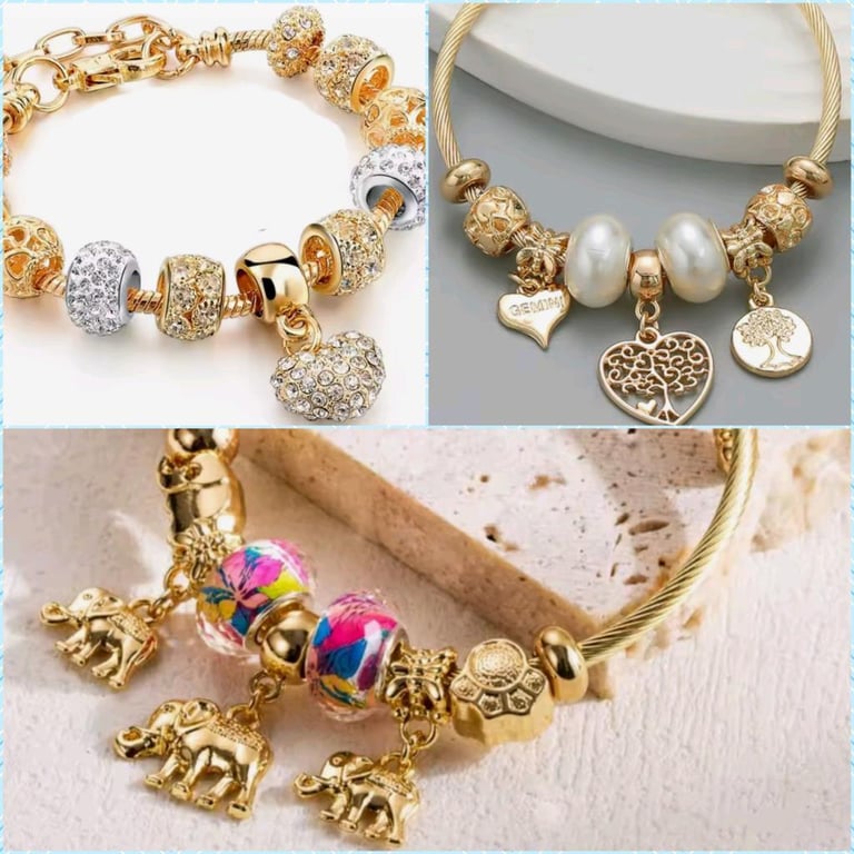 3 GOLD STAINLESS STEEL CHARM BRACELETS ASSORTED DESIGNS Condition: Good - Refer to images. 0+43