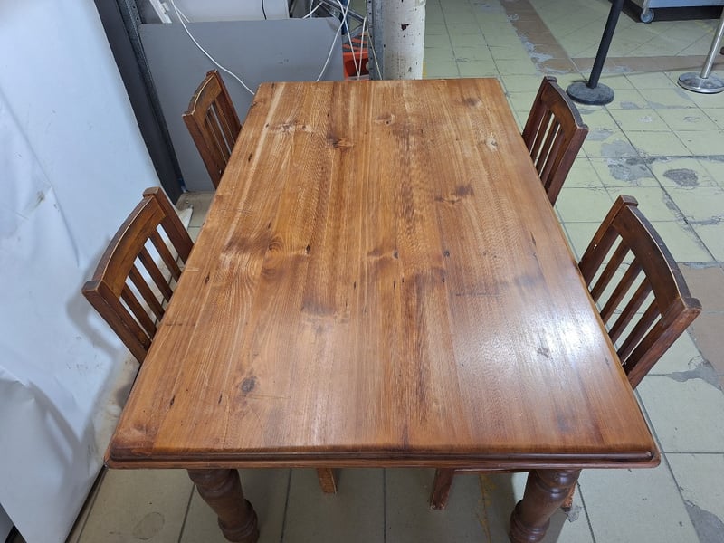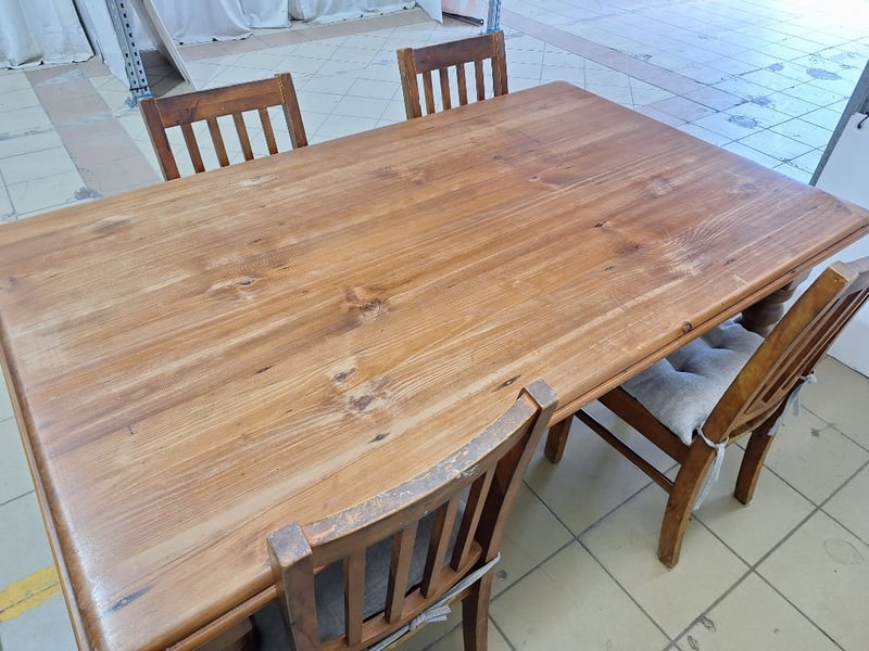 4 Seater Dining Table, Timber Style, Brown Finish Dimensions Chairs H:94cm W:42cm D:45cm Dimensions Table H:77cm W:103cm D:170cm