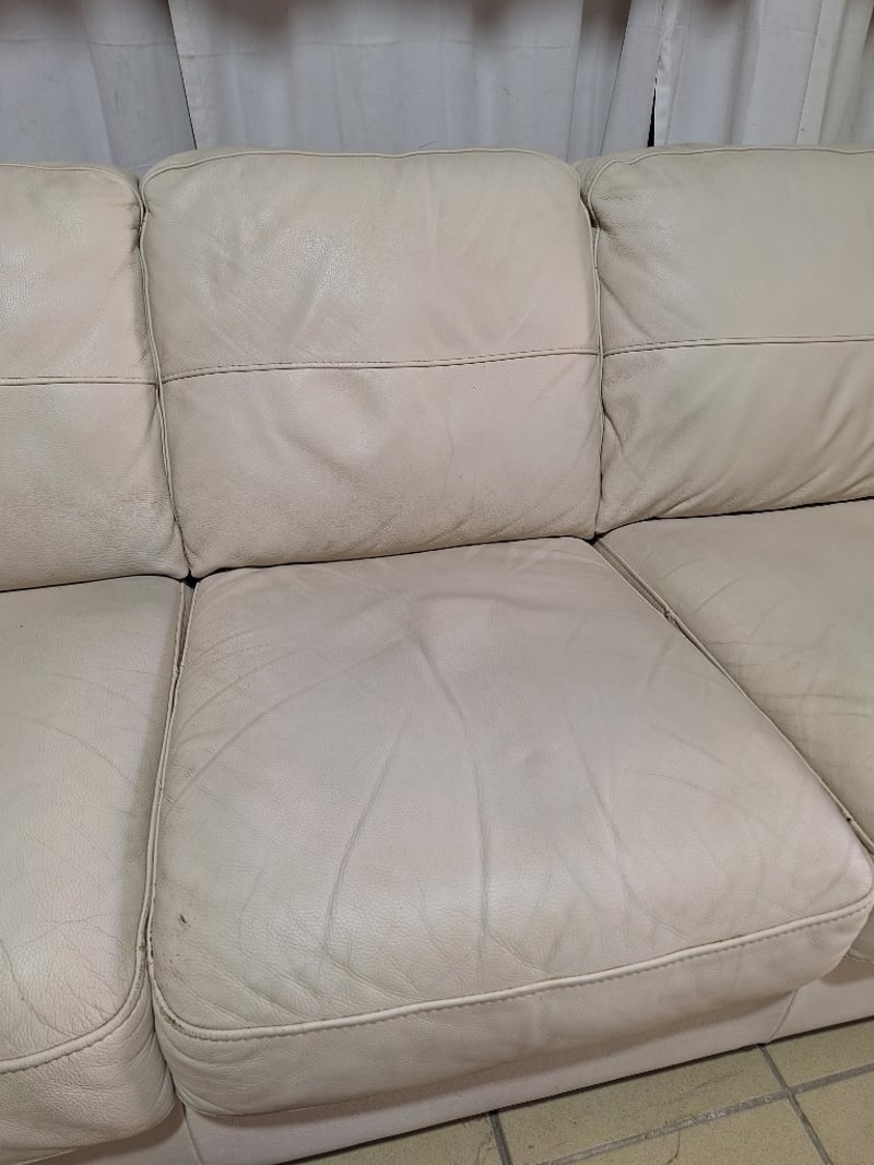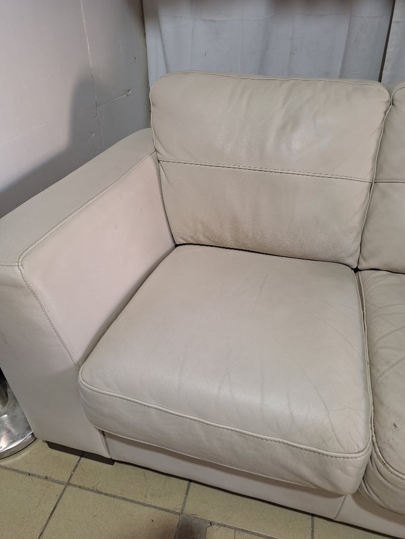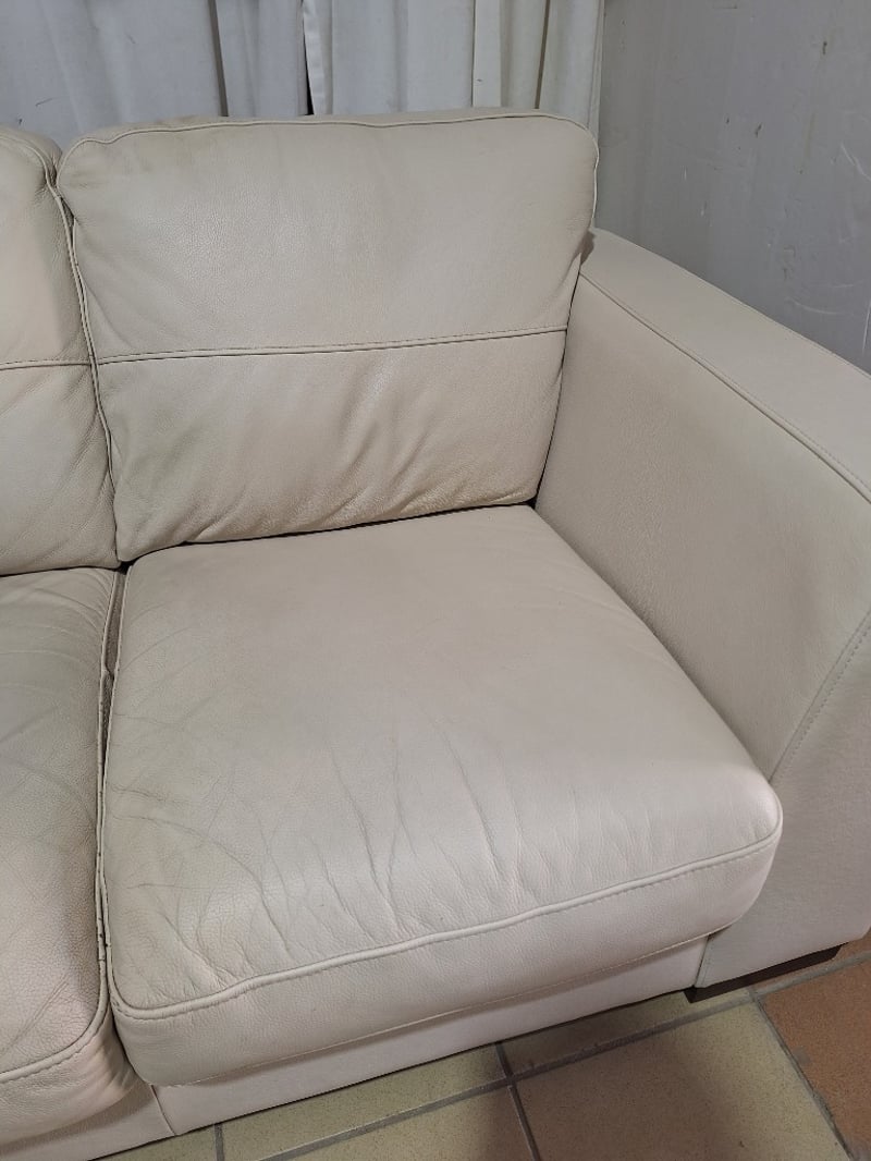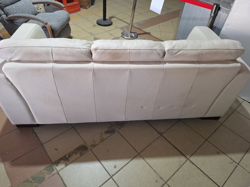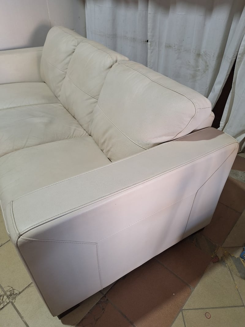 3-Seater Sofa, Leather Style, Cream Finish Dimensions H:85cm W:214cm D:94cm