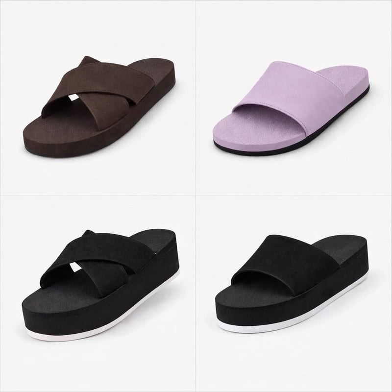 INDOSOLE WOMENS US 8/9 - EURO 39/40 - DECK OUT YOUR SUMMER STYLE WITH THIS INDOSOLE WOMENS 4 PAIR COMBO. 1 X CROSS SOIL + 1 X SLIDE LILAC + 1 X PLATFORM CROSS SNEAKER SOLE BLACK/SEA SALT SOLE + 1 X PLATFORM SLIDE SNEAKER SOLE BLACK/SEA SALT SOLE