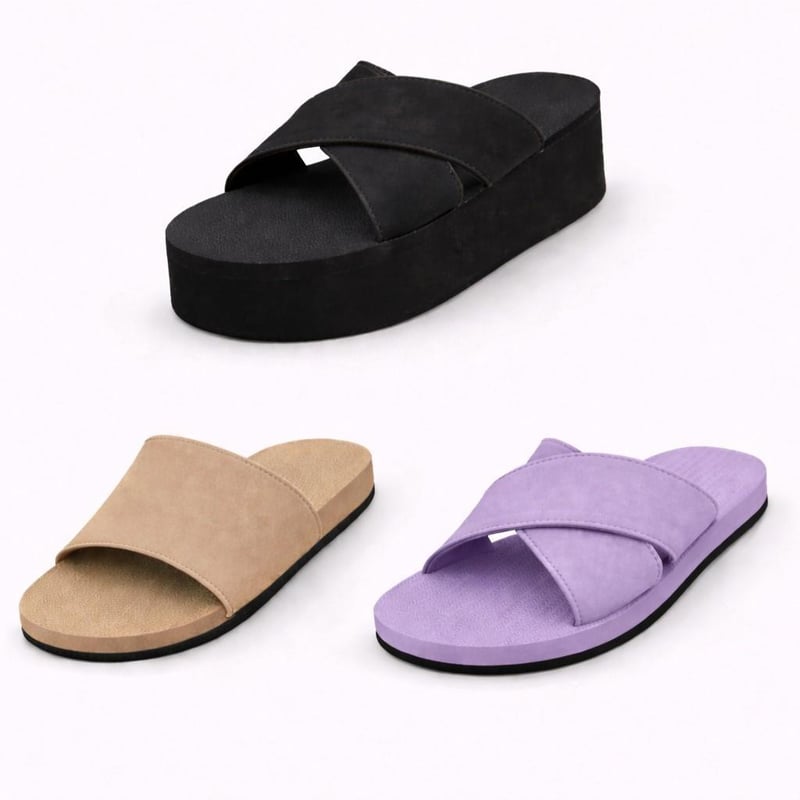 INDOSOLE WOMENS US 4/5 - EURO 35/36 - DECK OUT YOUR SUMMER STYLE WITH THIS INDOSOLE WOMENS 3 PAIR COMBO. 1 X CROSS LILAC + 1 X SLIDE SOIL LIGHT + 1 X PLATFORM CROSS BLACK