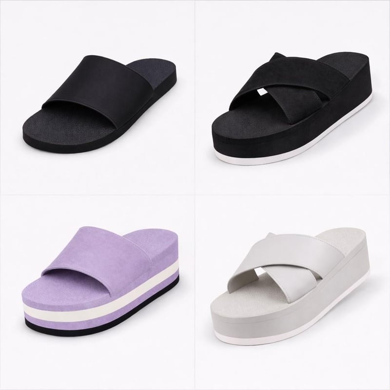 INDOSOLE WOMENS US 4/5 - EURO 35/36 - DECK OUT YOUR SUMMER STYLE WITH THIS INDOSOLE WOMENS 4 PAIR COMBO. 1 X SLIDE BLACK + 1 X CROSS SNEAKER SOLE BLACK/SEA SALT SOLE + 1 X PLATFORM SLIDE LILAC/SEA SALT STRIPE + 1 X PLATFORM CROSS SNEAKER SOLE SEA SALT/SEA SALT SOLE