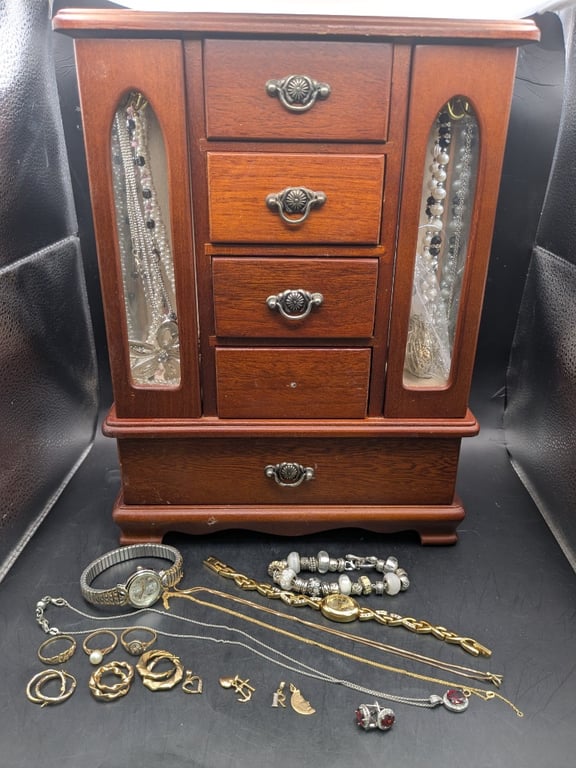 Jewellery, includes gold and silver style pieces stamped 925, 375, 9CT, various necklaces and more Sold as lot
