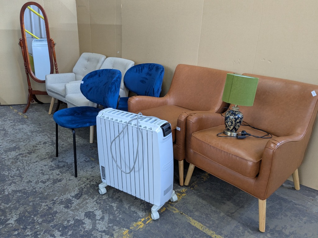 Homewares, including 6 x chairs, freestanding mirror, lamp and heater Sold as lot