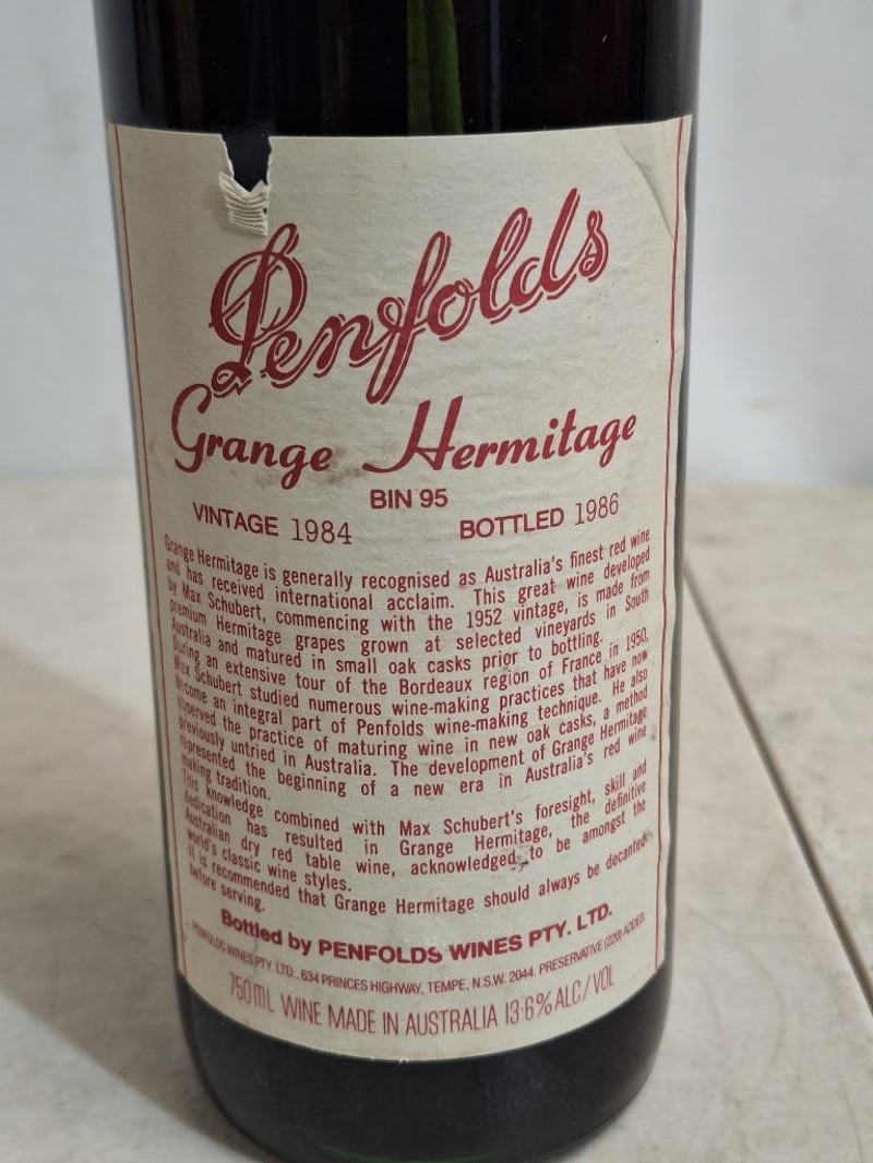 PENFOLDS GRANGE HERMITAGE BIN 95, VINTAGE 1984, BOTTLED 1986, 750ML, 13.6%VOLSize: Condition: Excellent - Refer To Images+37