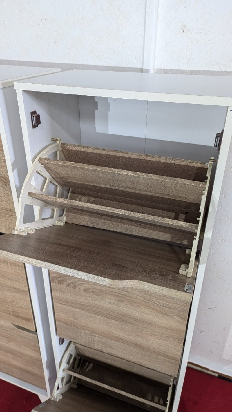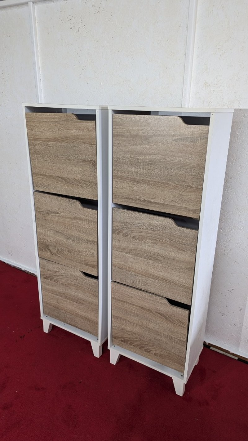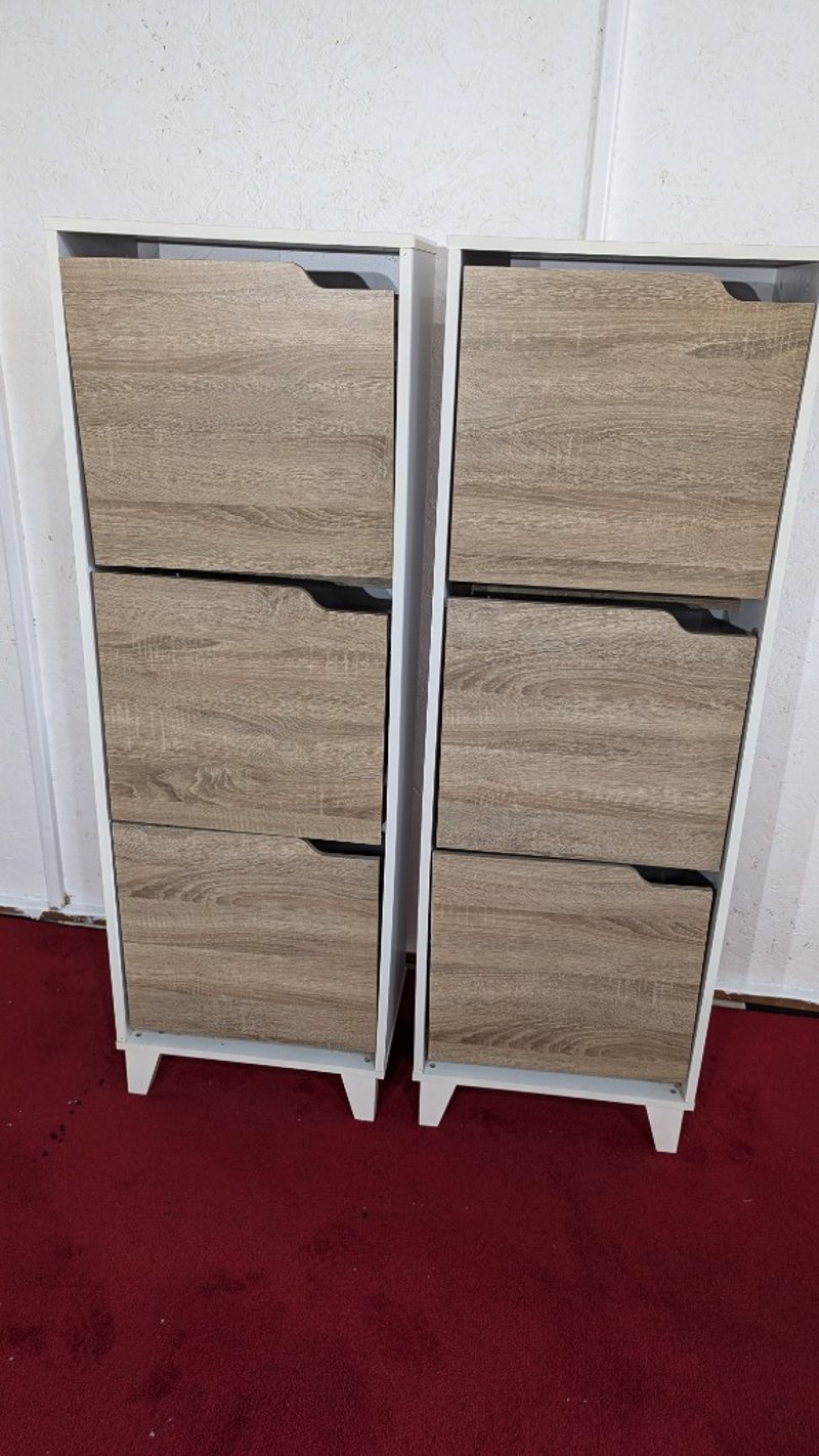 Flip Out Filing Cabinets, Timber Laminate, Three Shelves, , Dimensions 142cm(H)×47cm(W)×30cm(D), Quantity 2Sold As Lot