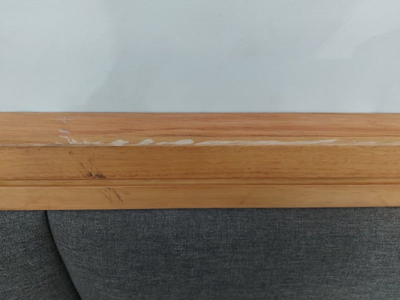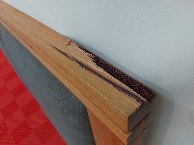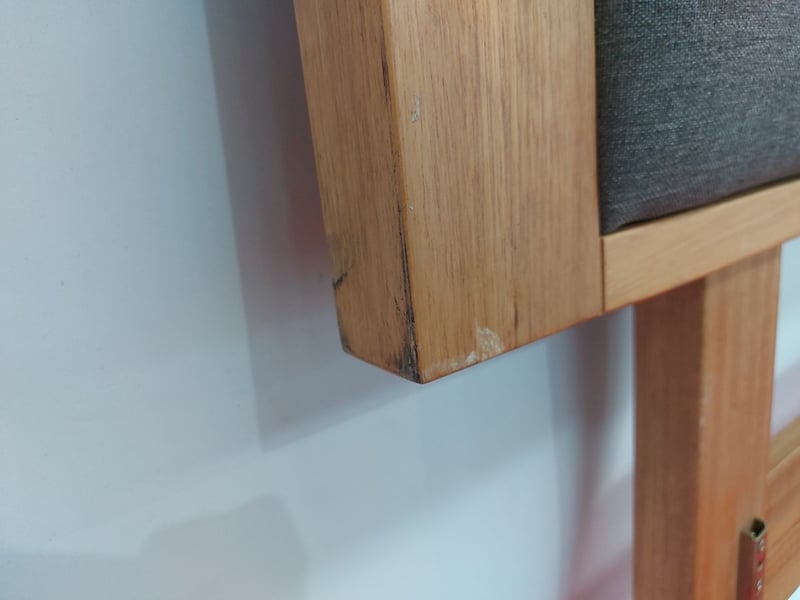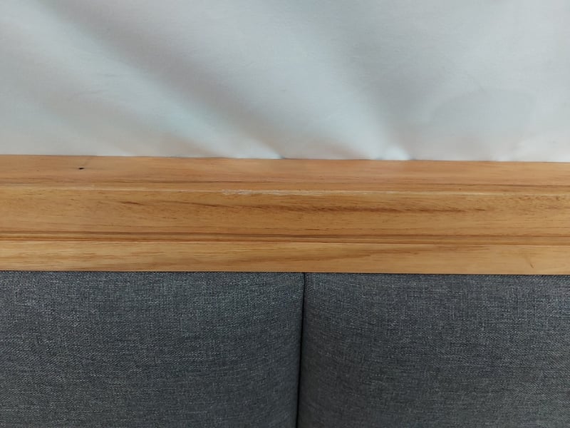 Super King Timber bedhead With Padding, Dimensions 230cmW×122cmH×4cmDNOTE: Partially Assembled For Display, Marks And Scratches, See Photos