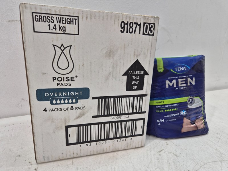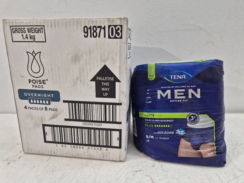Incontinence underwear, includes Poise Pads and Tena MenSold As Lot