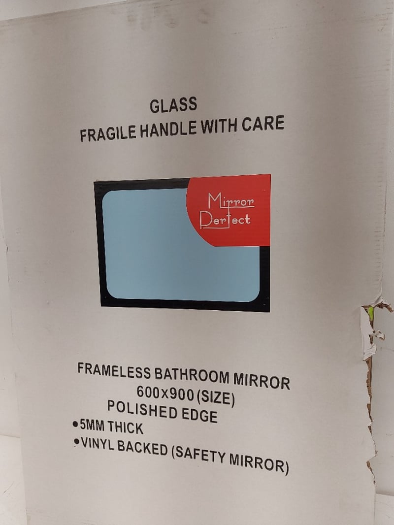Frameless Bathroom Mirroe, 600x900, Pilished Edge, 5mm Thich,NOTE: DAMAGED