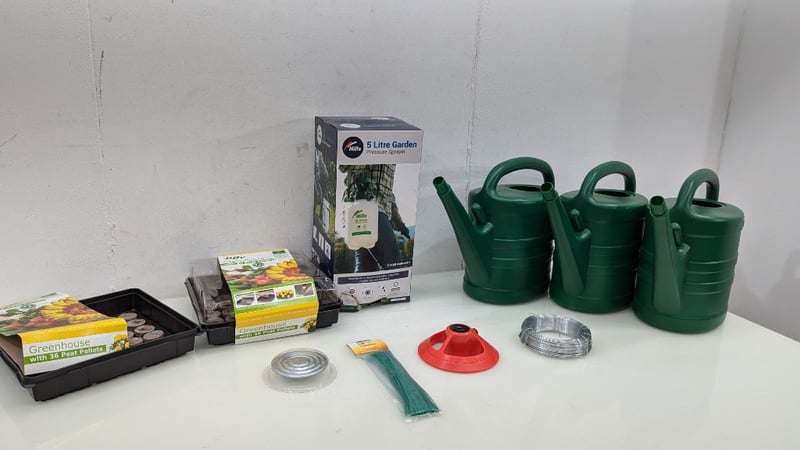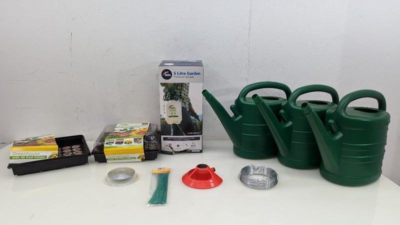 Gardening Bundle, Includes Watering Cans 8L, Pressure Sprayer, Greenhouse with Peat Pellets and More, Quantity 10Sold As Lot