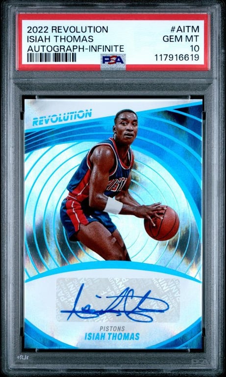2022 PANINI REVOLUTION AUTOGRAPHS #AITM ISIAH THOMAS AUTOGRAPH-INFINITE PSA GEM MT 10 Cert Number - 117916619 Item Grade - GEM MT 10 Label Type: PSA w/ Fugitive Ink Technology Reverse Cert/Barcode - Yes Year - 2022 Brand/Title - PANINI REVOLUTION AUTOGRAPHS Subject - ISIAH THOMAS Card Number - #AITM Category - BASKETBALL Cards Variety/Pedigree - AUTOGRAPH-INFINITE