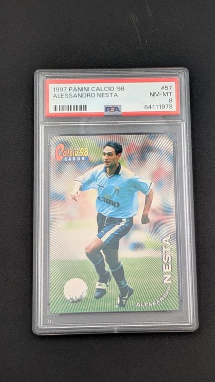 1997 PANINI CALICO '98 #57 ALESSANDRO NESTA PSA NM-MT 8 Cert Number - 84111978 Item Grade - NM-MT 8 Label Type: PSA w/ Fugitive Ink Technology Reverse Cert/Barcode - Yes Year - 1997 Brand/Title - PANINI CALICO '98 Subject - ALESSANDRO NESTA Card Number - #57 Category - FOOTBALL Cards