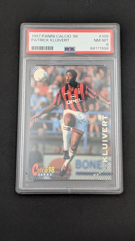 1997 PANINI CALICIO '98 #109 PATRICK KLUIVERT PSA NM-MT 8 Cert Number - 84111998 Item Grade - NM-MT 8 Label Type: PSA w/ Fugitive Ink Technology Reverse Cert/Barcode - Yes Year - 1997 Brand/Title - PANINI CALICIO '98 Subject - PATRICK KLUIVERT Card Number - #109 Category - FOOTBALL Cards