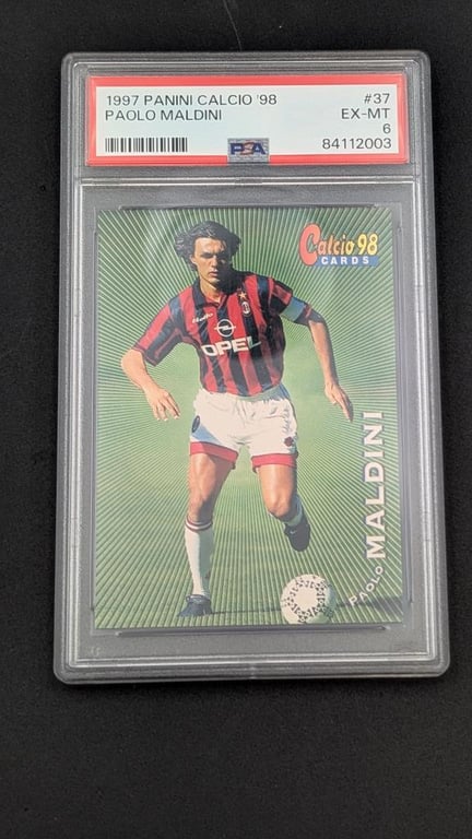 1997 PANINI CALICIO '98 #37 PAOLO MALDINI PSA EX-MT 6 Cert Number - 84112003 Item Grade - EX-MT 6 Label Type: PSA w/ Fugitive Ink Technology Reverse Cert/Barcode - Yes Year - 1997 Brand/Title - PANINI CALICIO '98 Subject - PAOLO MALDINI Card Number - #37 Category - FOOTBALL Cards