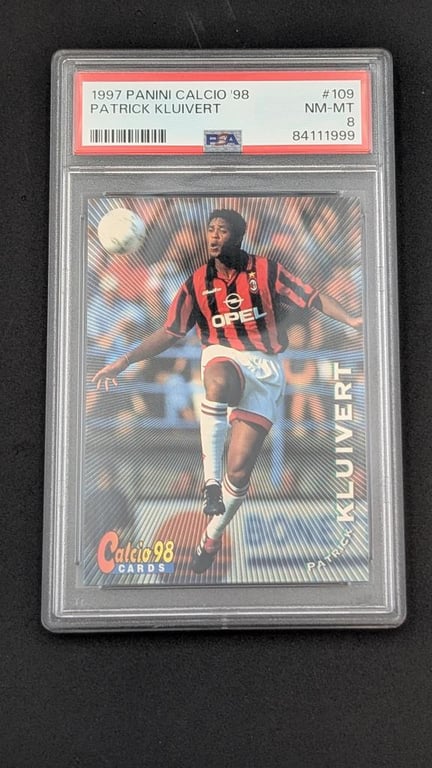 1997 PANINI CALICIO '98 #109 PATRICK KLUIVERT PSA NM-MT 8 Cert Number - 84111999 Item Grade - NM-MT 8 Label Type: PSA w/ Fugitive Ink Technology Reverse Cert/Barcode - Yes Year - 1997 Brand/Title - PANINI CALICIO '98 Subject - PATRICK KLUIVERT Card Number - #109 Category - FOOTBALL Cards