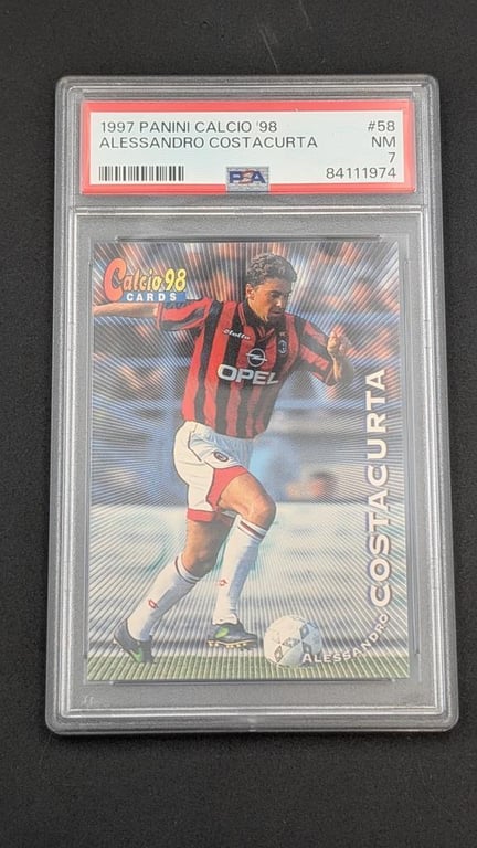 1997 PANINI CALICIO '98 #58 ALESSANDRO COSTACURTA PSA NM 7 Cert Number - 84111974 Item Grade - NM 7 Label Type: PSA w/ Fugitive Ink Technology Reverse Cert/Barcode - Yes Year - 1997 Brand/Title - PANINI CALICIO '98 Subject - ALESSANDRO COSTACURTA Card Number - #58 Category - FOOTBALL Cards