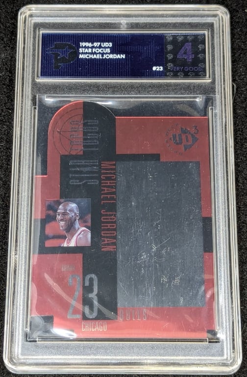 PSG GRADED 1996-97 UD3 MICHAEL JORDAN BASKETBALL CARD, 4 VERY GOOD Star Focus 584894+4