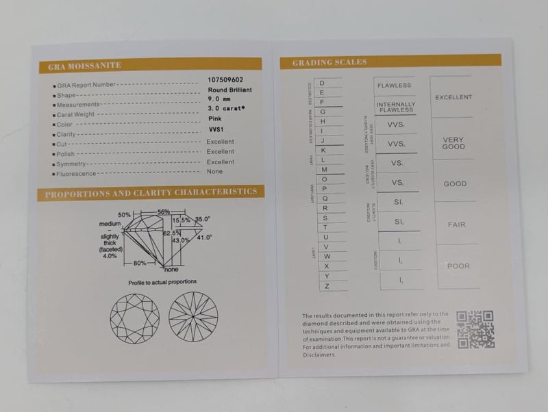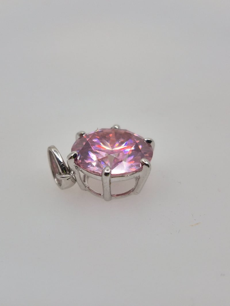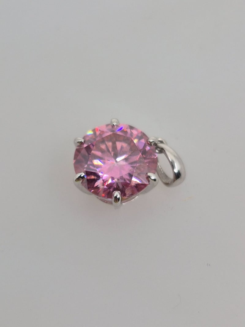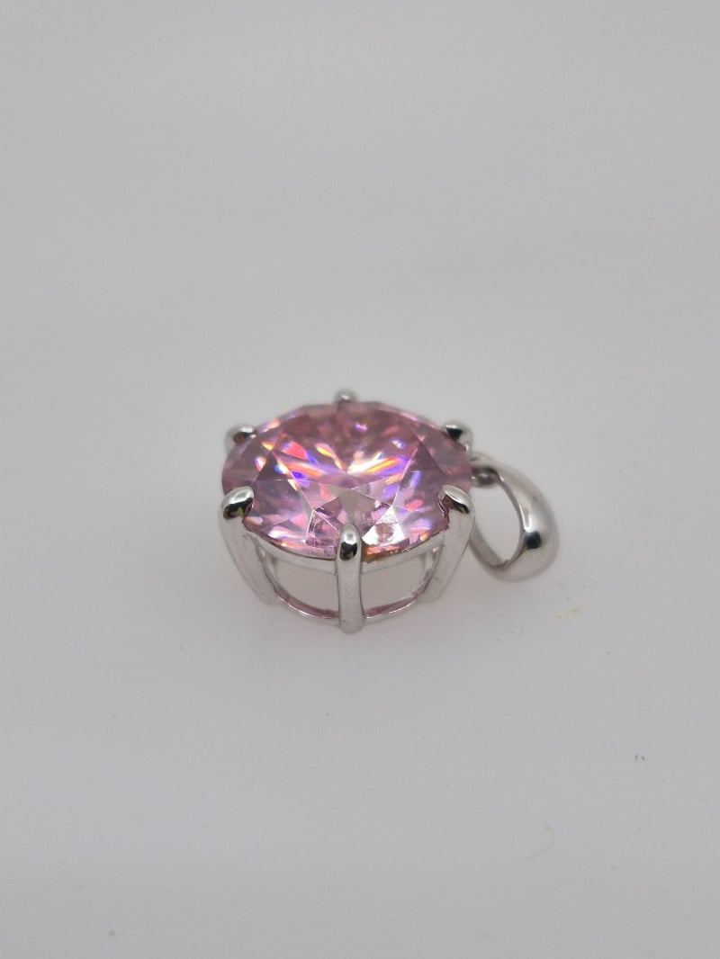 FAUX SILVER 3.0CT PINK MOISSANITE PENDANT Size: 9.0Mm Shape: Round Brilliant Comes With Gra Moissanite Report Condition: Good - Refer To Images 586160+1