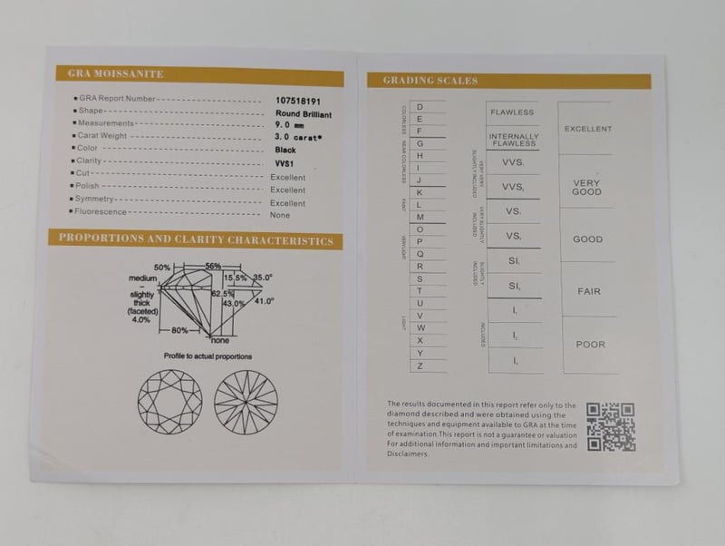 3.0CT BLACK MOISSANITESize: 9.0MmShape: Round Brilliant Comes With Gra Moissanite ReportCondition: Good - Refer To Images586160+15
