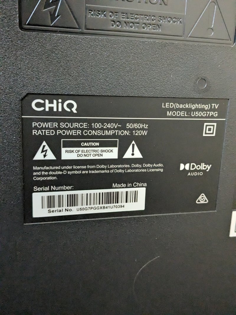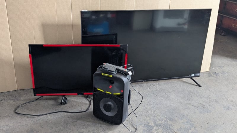 Electrical, including Chiq 50inch TV U50G7PG, speaker and small TV Sold as lot