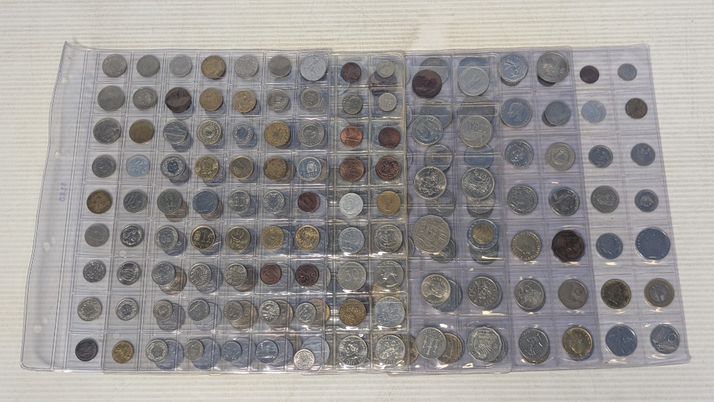 COINS, 5 X SHEETS OF ASSORTED WORLD COINS232777+2