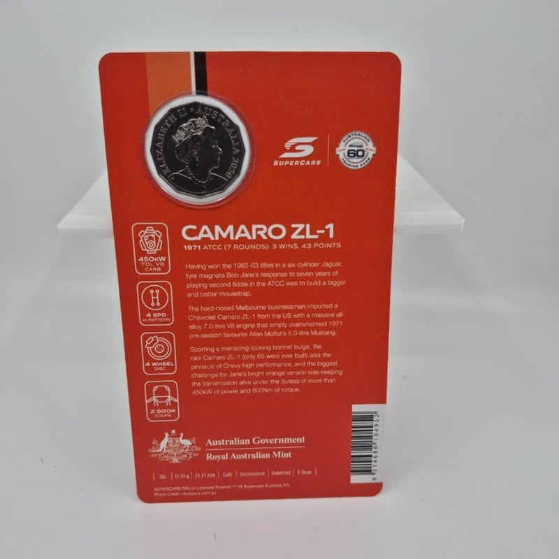 ROYAL AUSTRALIAN MINT SCARCE 2020 SUPERCARS CHEVROLET COLORISED COIN. UNCIRCULATED