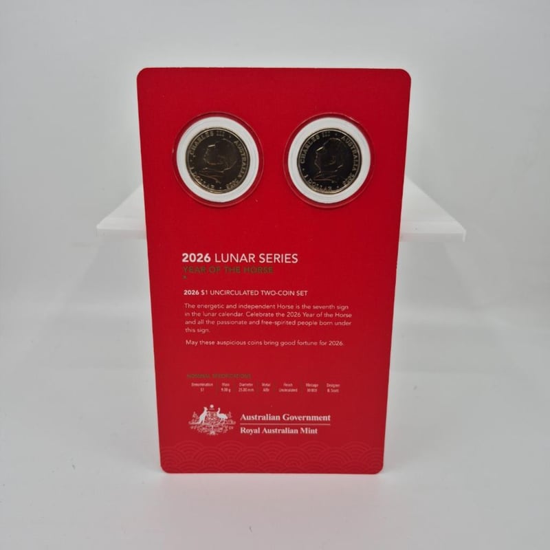 ROYAL AUSTRALIAN MINT 2025 YEAR OF THE HORSE TWO COIN SET. UNCIRCULATED Condition: Good587689+39