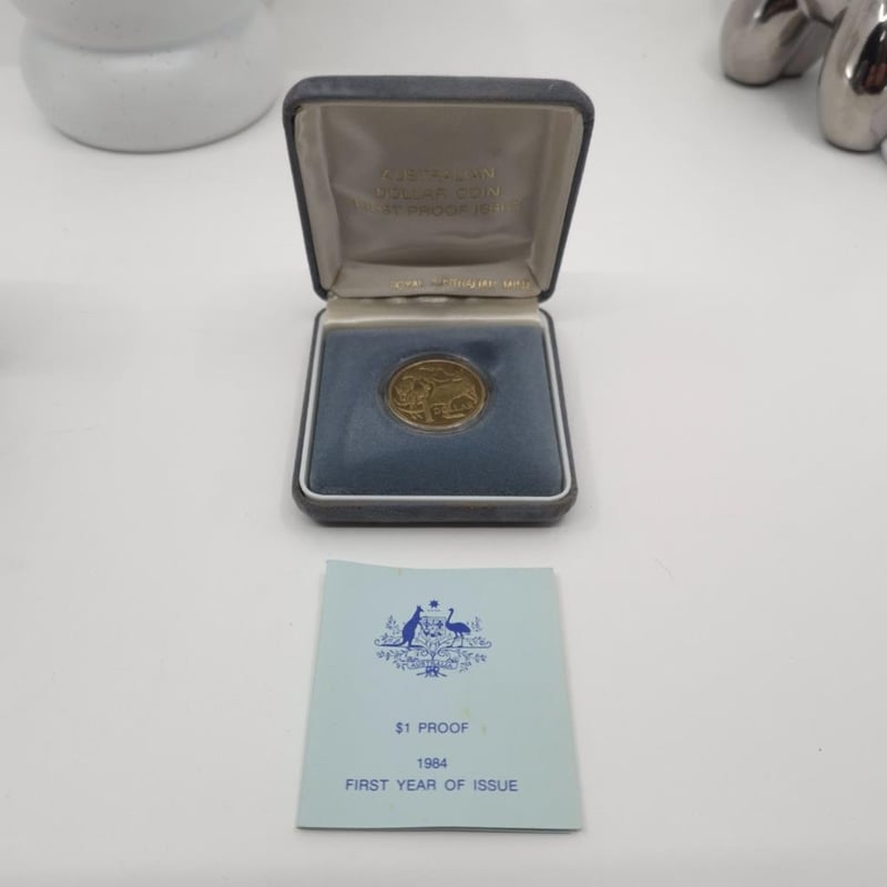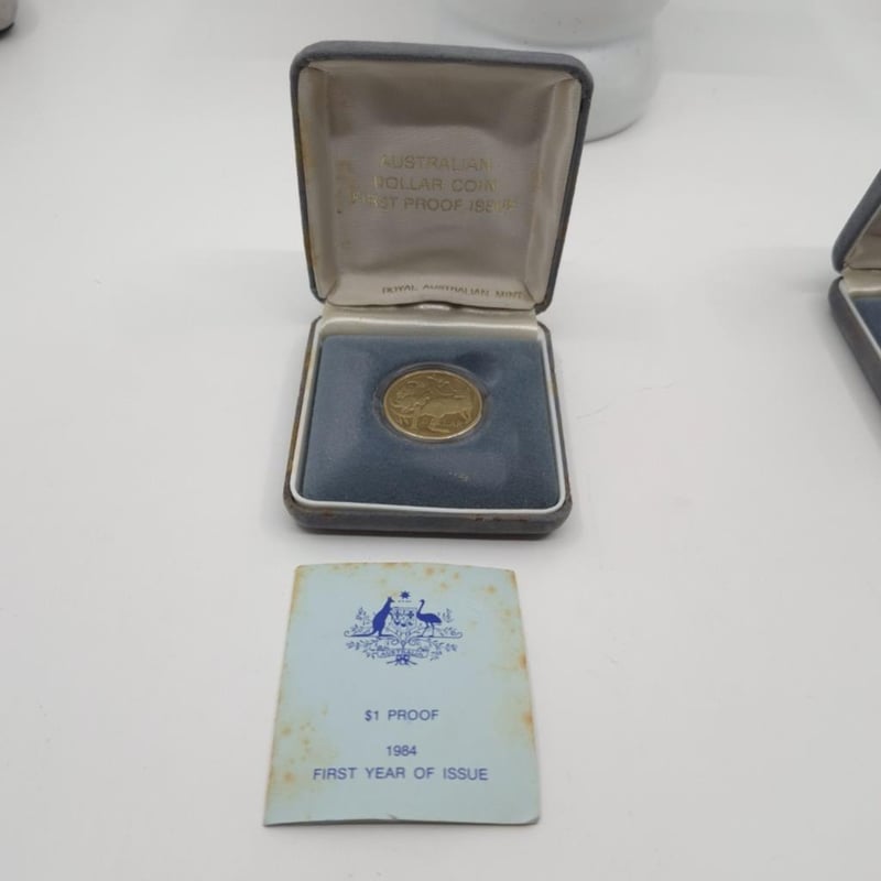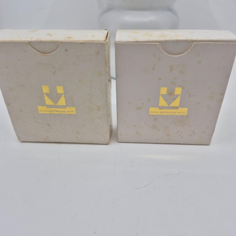 TWO ROYAL AUSTRALIAN MINT 1984 ONE DOLLAR COINS IN ORIGINAL BOX. PROOF Condition: Good587689+46
