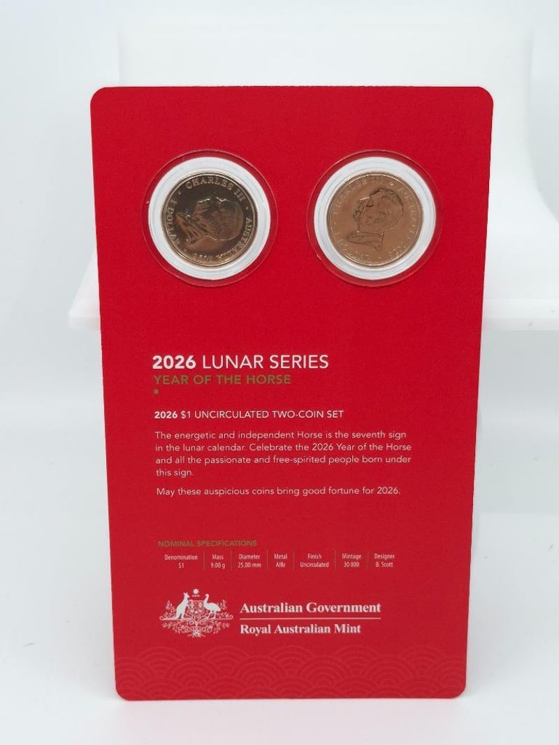 ROYAL AUSTRALIAN MINT 2025 YEAR OF THE HORSE TWO COIN SET. UNCIRCULATED Condition: Good587689+55