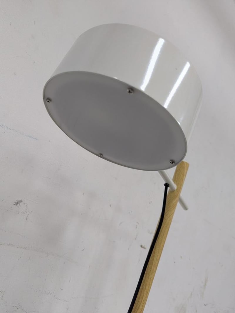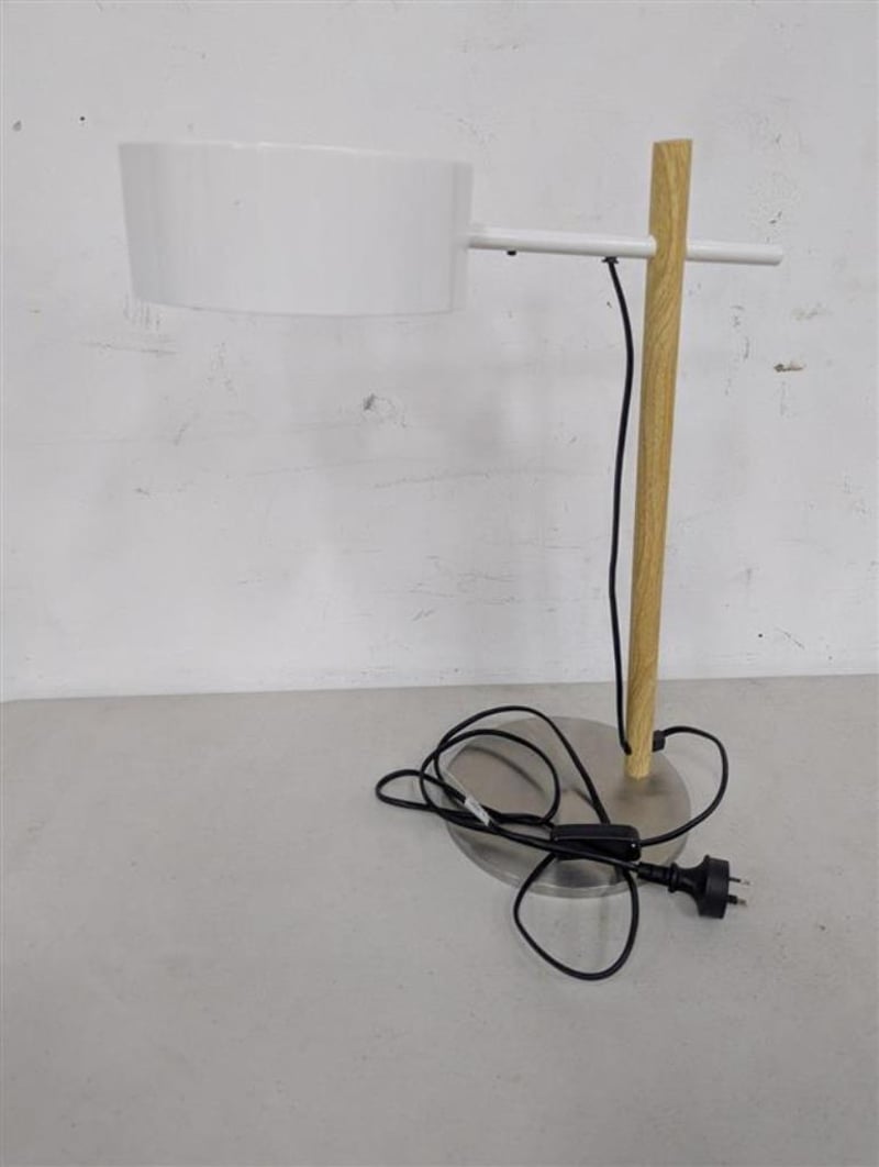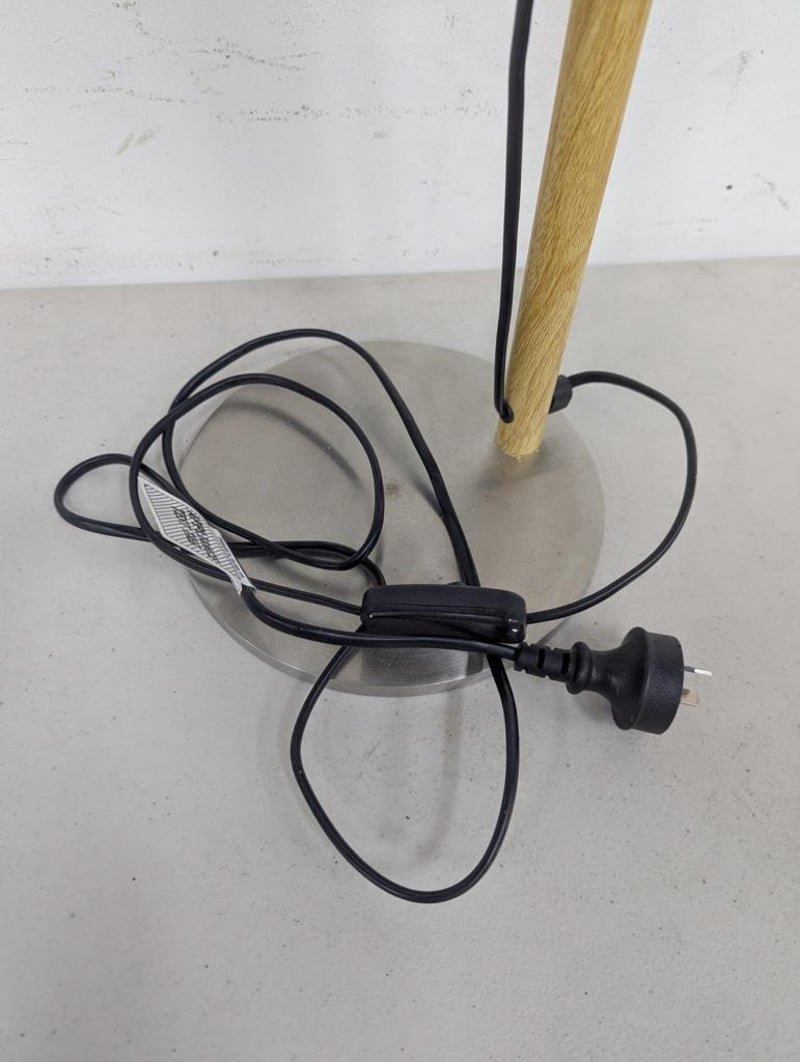 Bedside Lamp, metal base, timber stand Dimensions: H 49.5cm x W 34cm x D 21cm