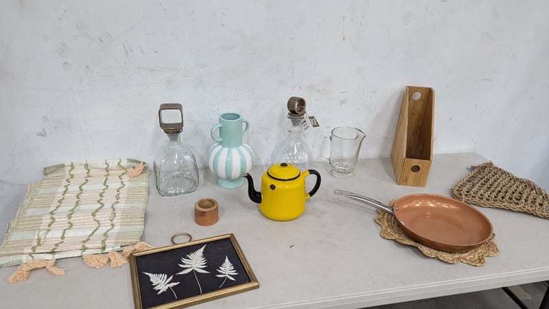 Homewares Package, Includes Tea Pot, Frying Pan, Glass Containers and More, Quantity 11Sold As Lot
