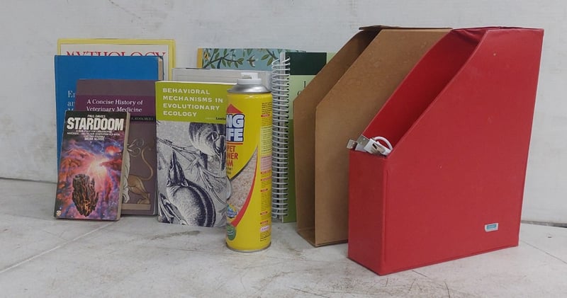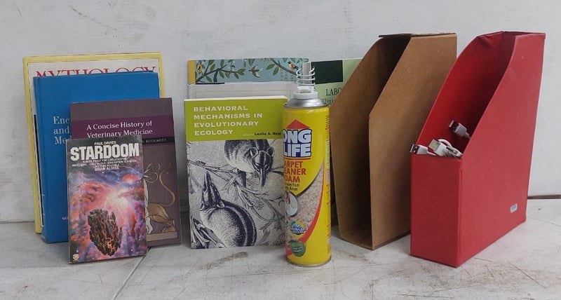 Assorted Lot of Books on Veterinary, Nursing, Wildlife, Manilla Folder Storage Boxes, Chargers SOLD AS LOT.