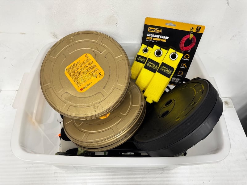 ASSORTED LOT. Film Canisters, Kodak, storage strap, cord tech, multi purpose straps SOLD AS LOT