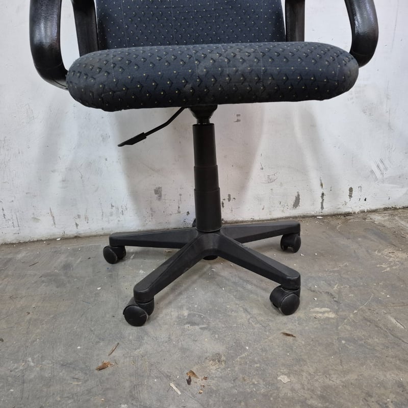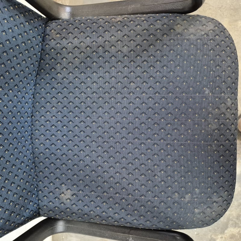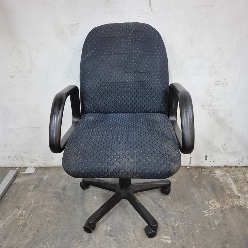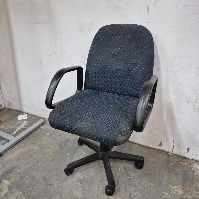 1 x swivel deluxe chair, arm Rests, adjustable height lever, wheels, cushion seats and back support Some wear and tear on seat. Dimensions: H 125cm x 72cm x D 75cm