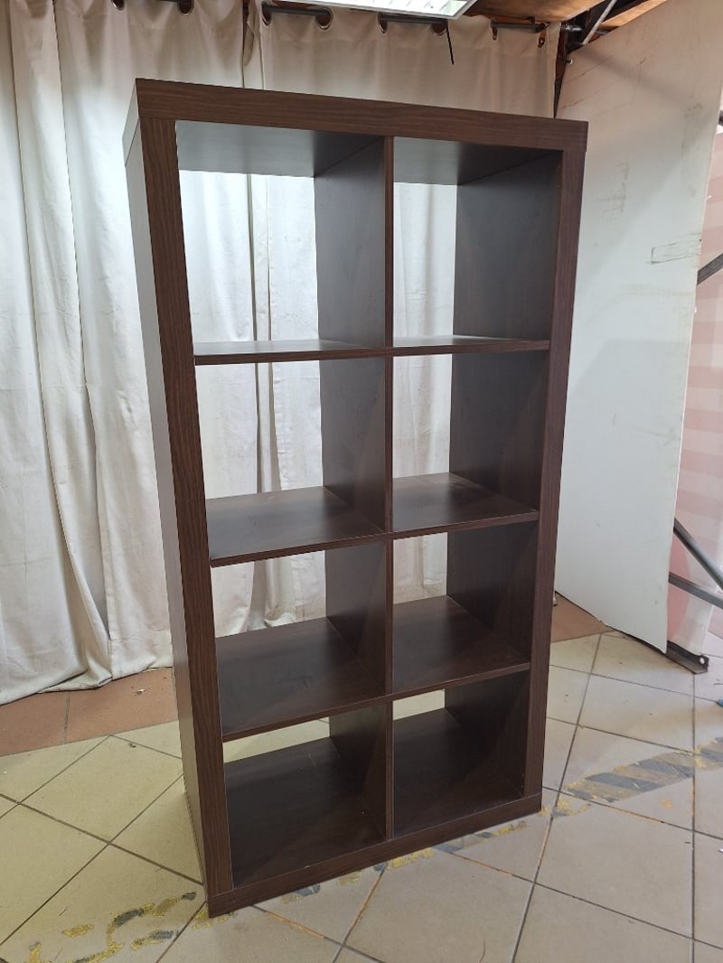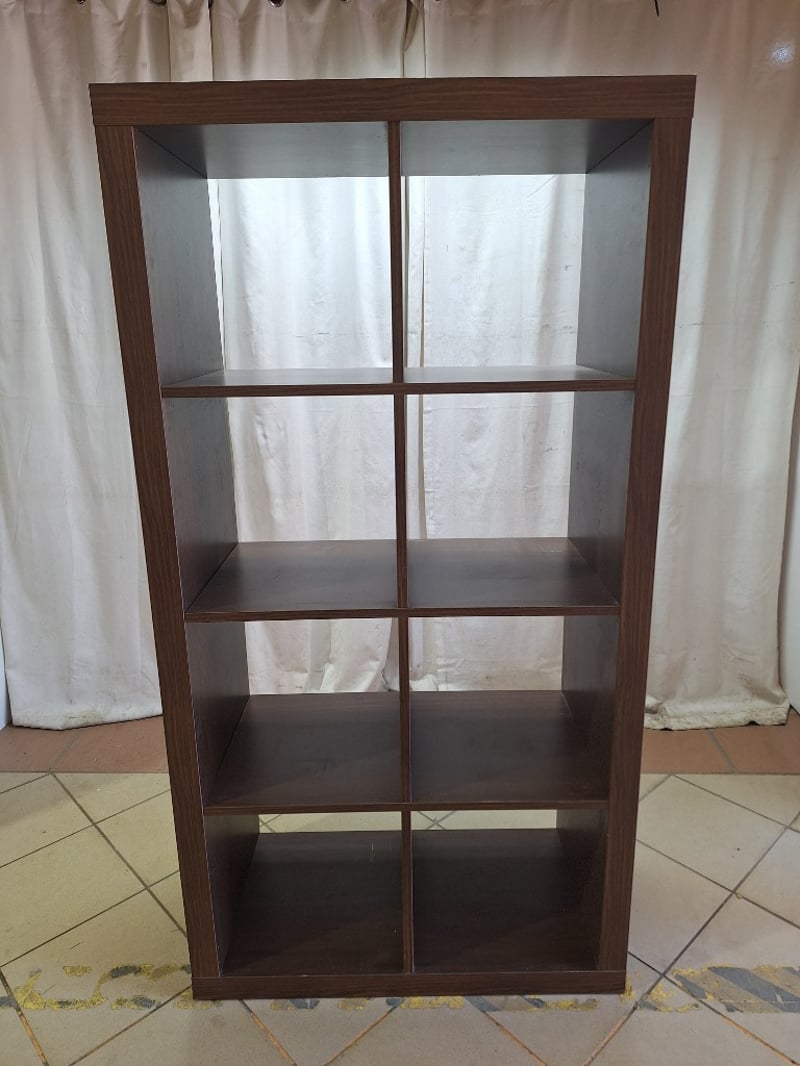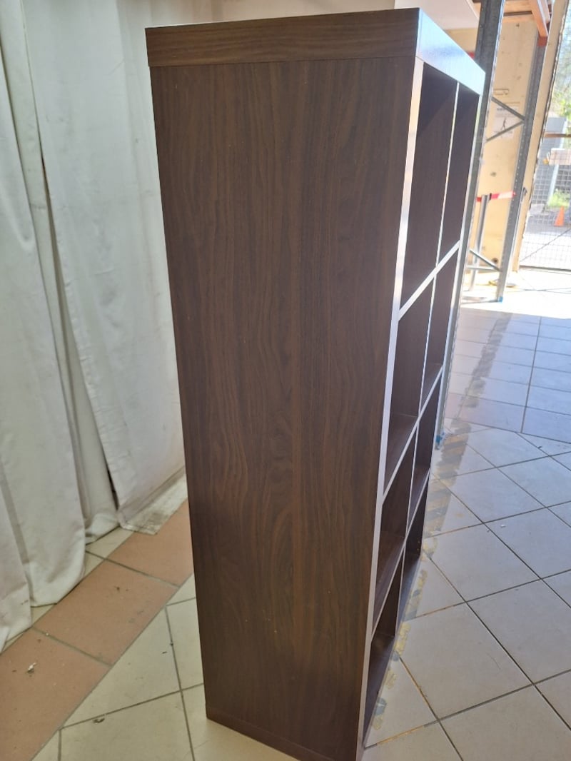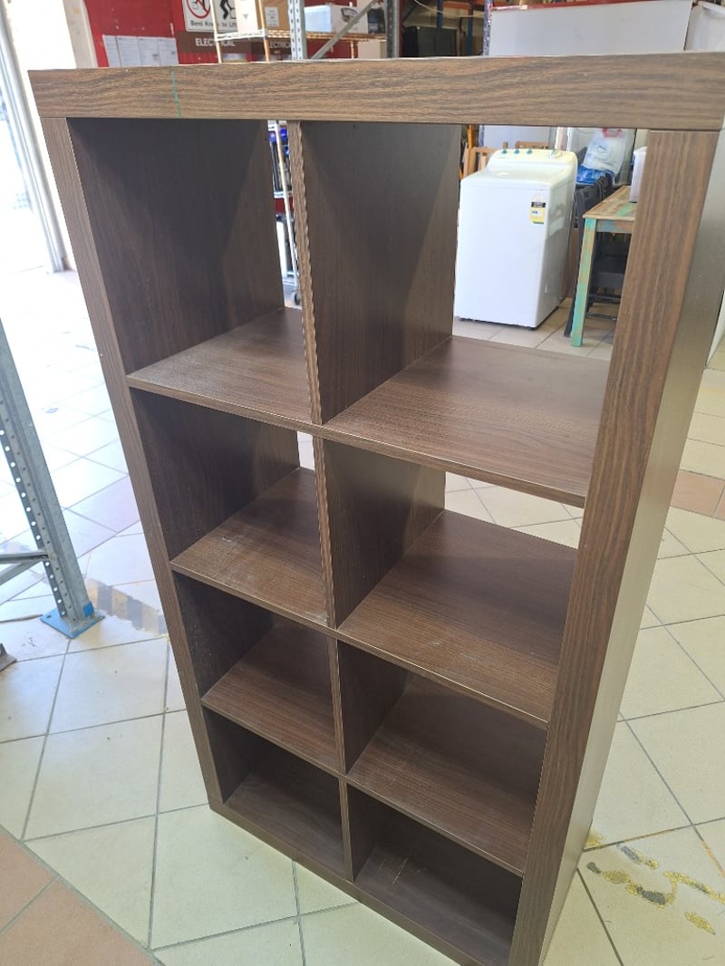 Bookshelf, 8 Storage Areas, Timber Finish, Dark Brown Finish Dimensions H:150cm W:79cm D:39cm
