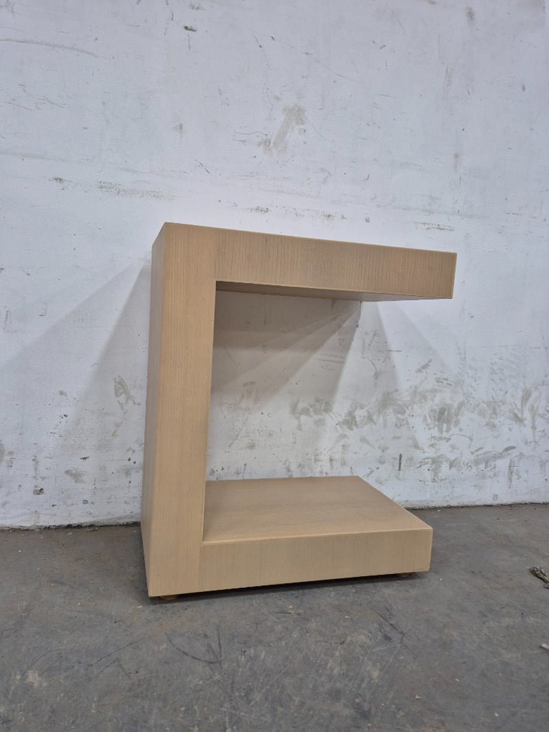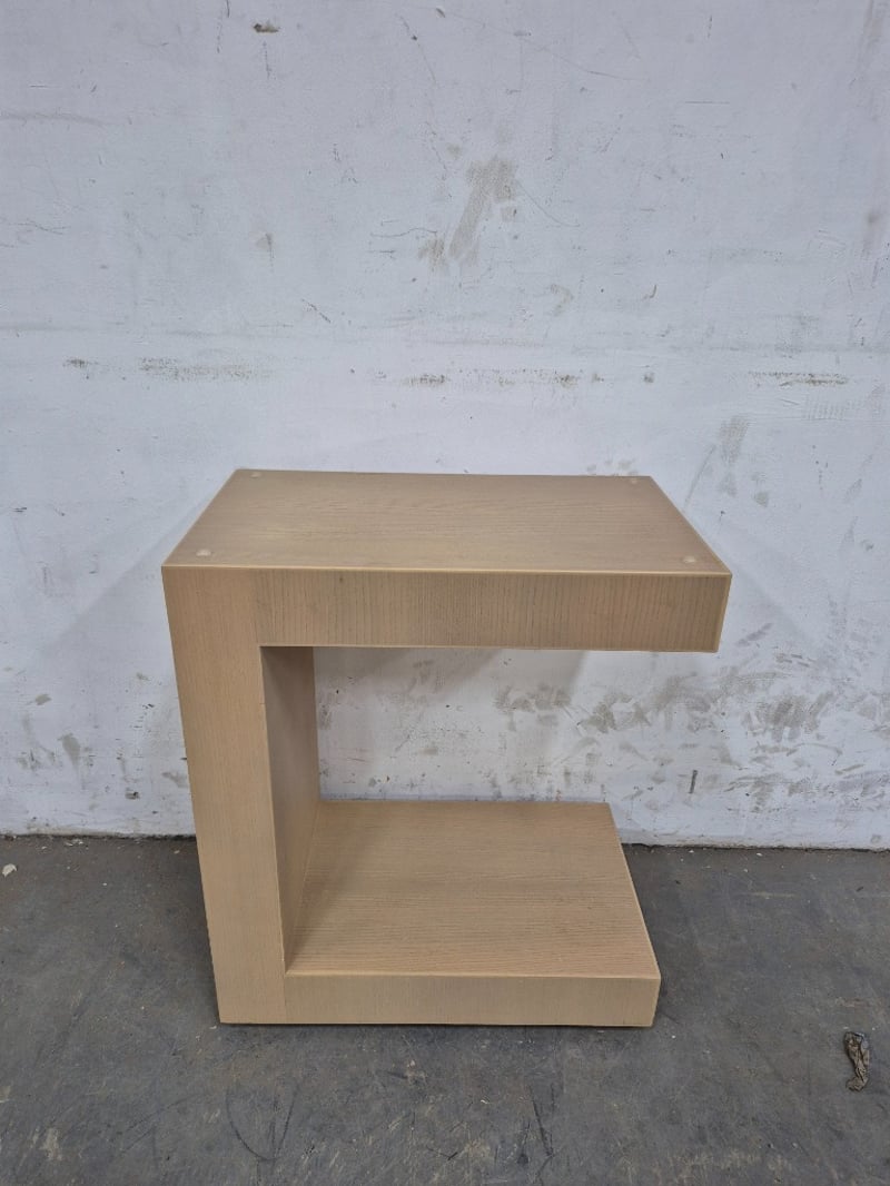 Timber C shape bedside table Note: no glass top suppliedNote: Possible Signs of Wear and TearBID PER EACH