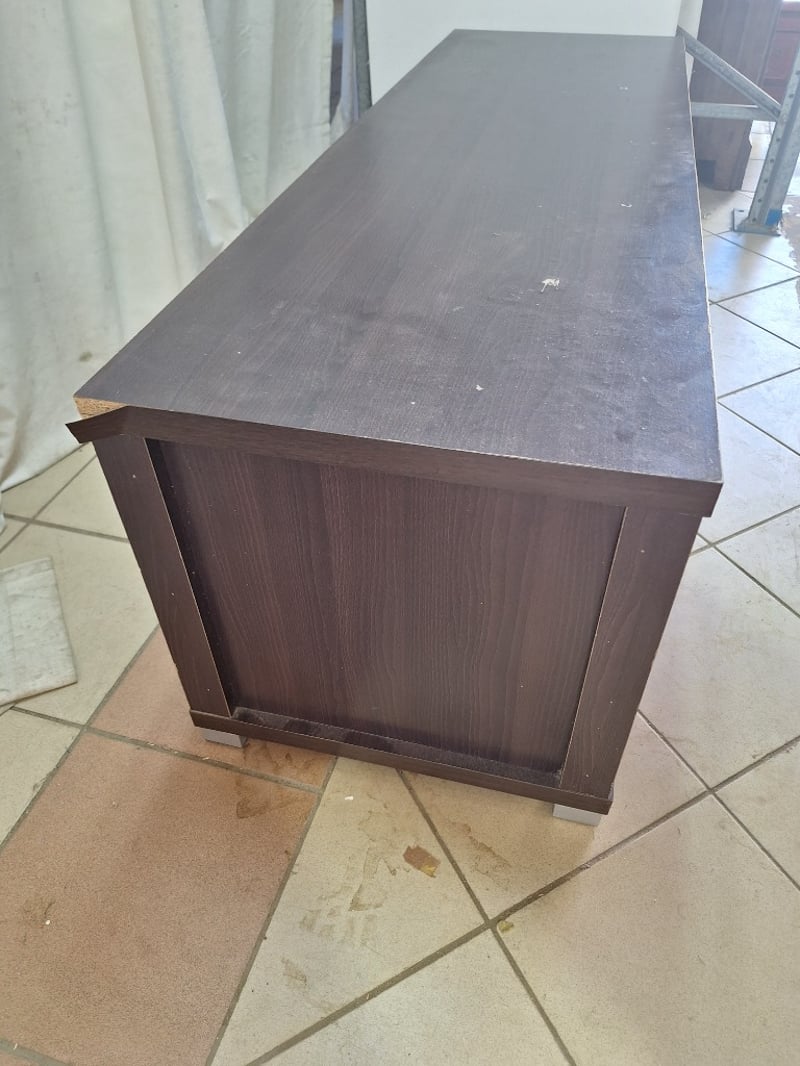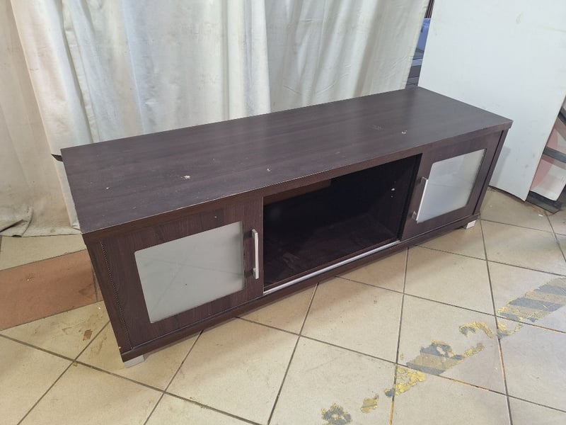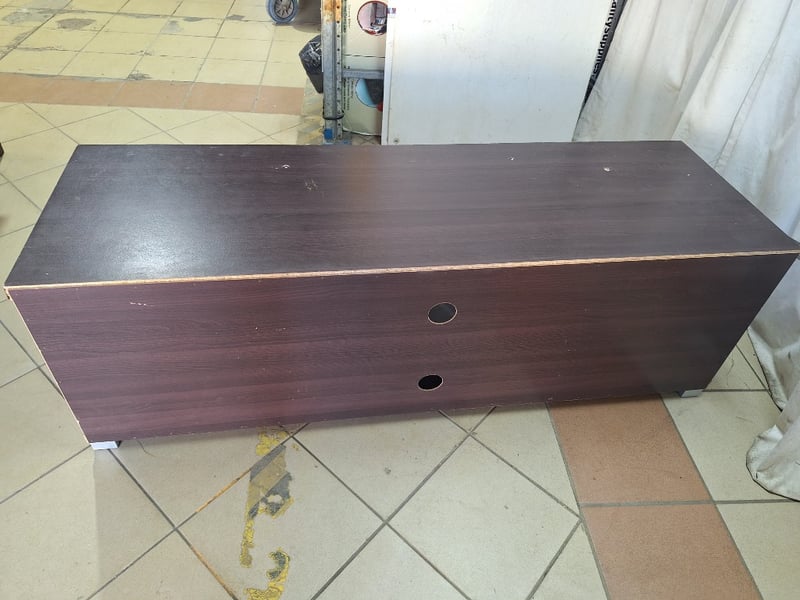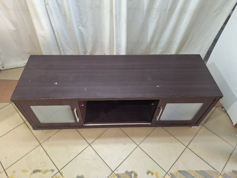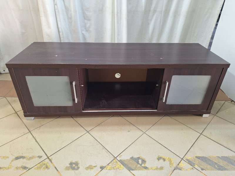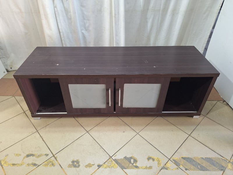 TV Stand With 2 Side Cabinets & A Central Open Shelf, Timber Style, Dark Brown Finish Dimensions H:50cm W:150.5cm D:48cm