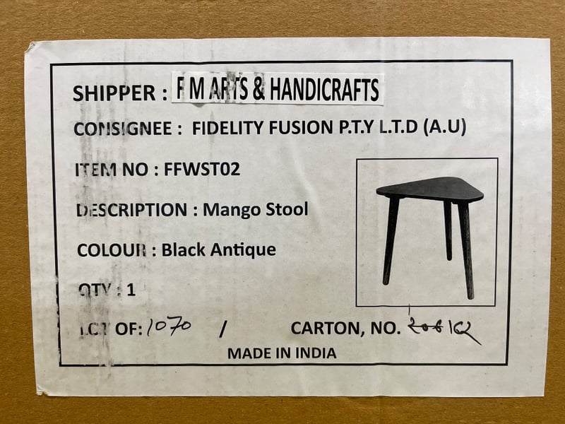 Mango stool, timber, black antique finish, Model: FFWST02 DIMENSIONS: 40cmH x 40.5cmW x 36.5cmD BID PER EACH