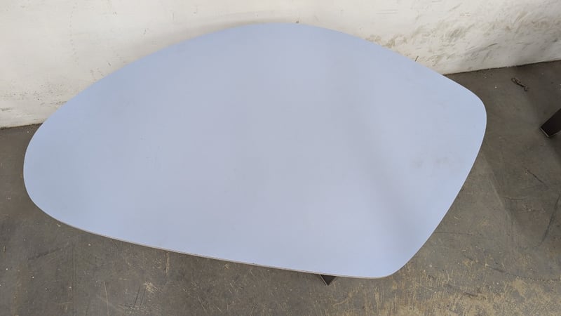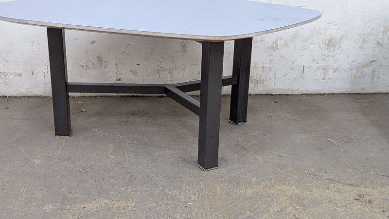 Coffee table, blue finish top, grey finish metal frame Dimensions: H 46cm x W 114cm x D 75cm Note: Possible Signs of Wear and Tear BID PER EACH