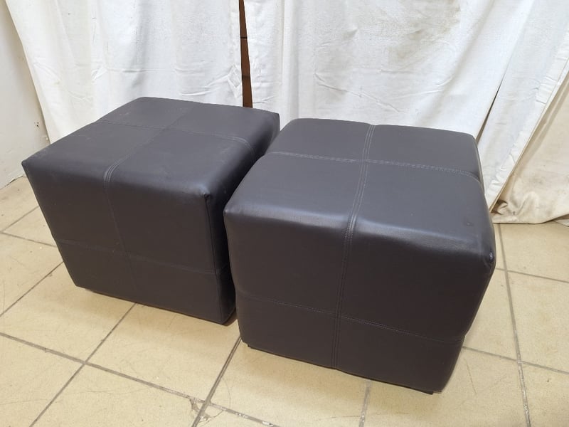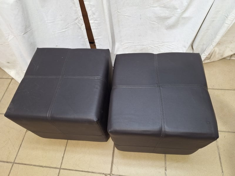 x2 Ottoman, Leather Style, Black FinishDimensions H:42cm W:45cm D:45cm