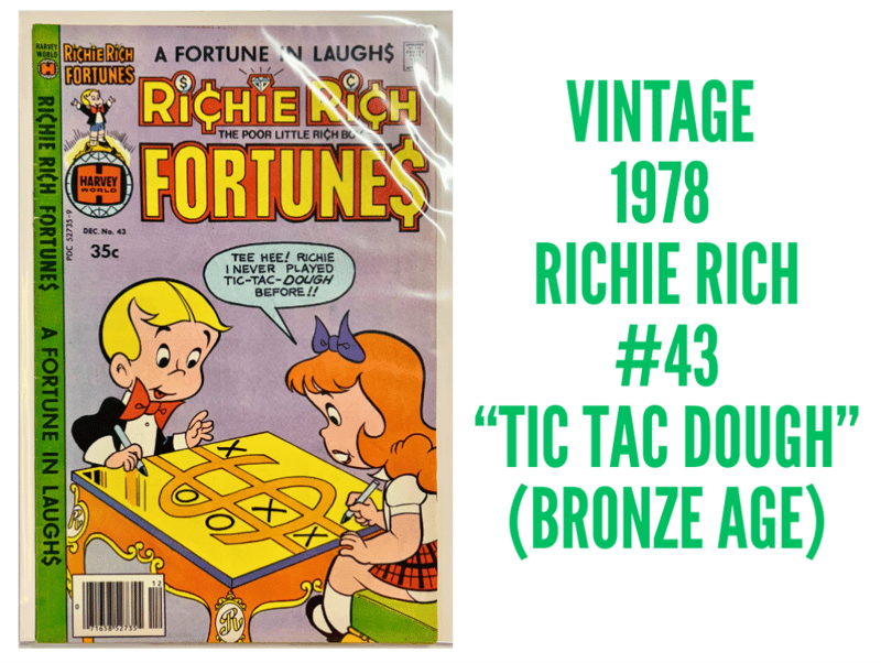 1978 RICHIE RICH FORTUNES #43 “TIC TAC DOUGH” COMIC (BRONZE AGE) A Fun And Playful Issue From The Harvey Comics Line, This 1978 Richie Rich Fortunes #43 Features The Beloved “Poor Little Rich Boy” Taking On A Golden Twist Of The Classic Game In Tic Tac Dough. A Lighthearted Bronze Age Gem With Classic Artwork And Humor That Defined The Richie Rich Series. - 1978 Richie Rich Fortunes Issue #43 - Bronze Age Comic From Harvey Comics - Humorous “Tic Tac Dough” Cover Story 584901+97