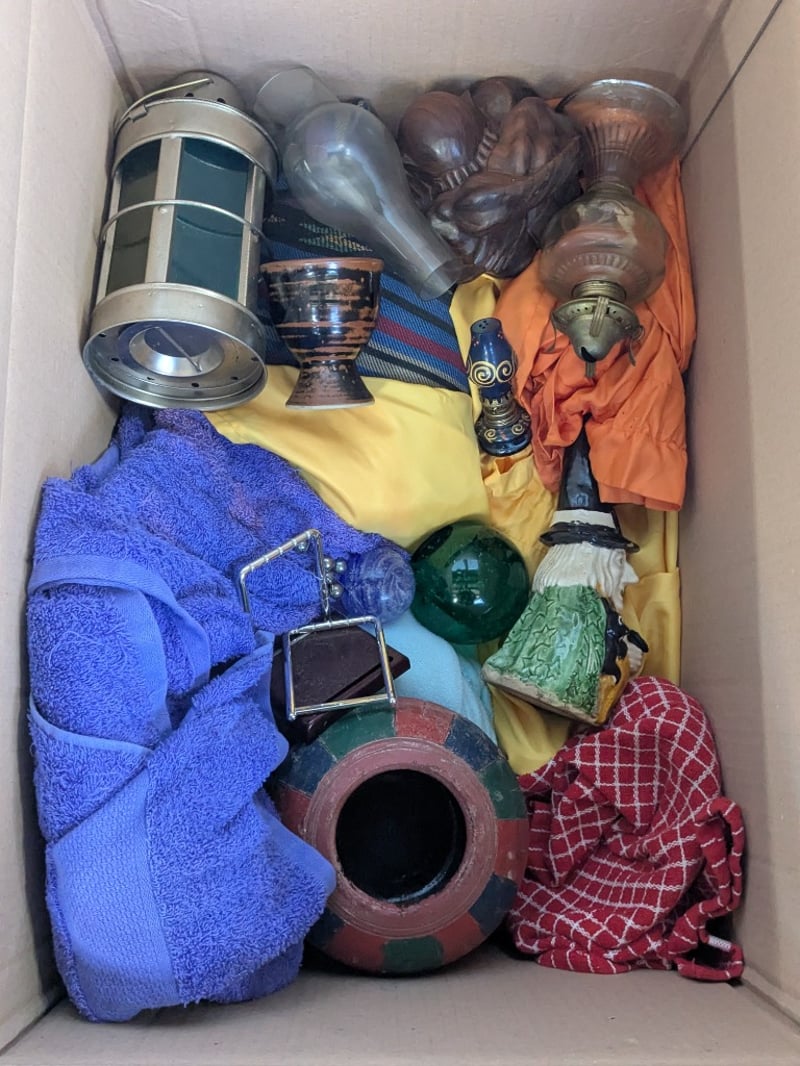 Homewares, 6 boxes including kitchenware, ornaments, small electrical and more