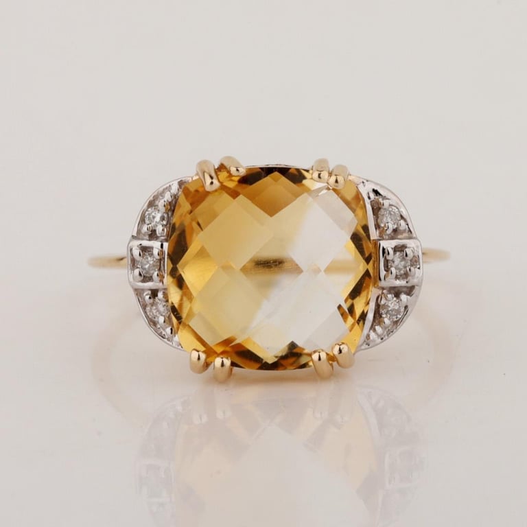 9CT YELLOW GOLD NATURAL CITRINE & DIAMOND RING Weight Of The Item: 2.06 G Fineness Of Metal(S): Yellow Gold 9Kt The Ring Consists Of (1) Cushion Brilliant Natural Citrine. Surrounding The Main Stones Are Round Brilliant Cut Natural Diamonds. Antique Style Identification: Natural Citrine Color: Yellow Shape: Cushion Brilliant Cut No. Of Stone: 1 Dimension: 10 Mm X 10 Mm X 6 Mm Weight: 4.35 Carats Cut: Very Good Identification: Natural Diamond Shape: Round Brilliant Cut Weight: 0.05 Cts Cut: Excellent. Certificates Are Provided By Gemological Science International (Gsi), An Independent Third-Party Gemological Laboratory Based In The Usa And Recognised Among The Top 10 Gem Labs Globally Markings: 9ct Condition: Good - Refer Images 0 488238+87