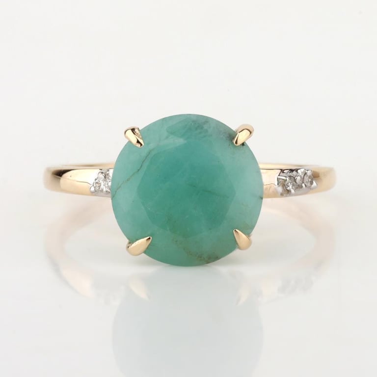 9CT YELLOW GOLD NATURAL EMERALD & DIAMOND RING Weight Of The Item: 1.97 GFineness Of Metal(S): Yellow Gold 9KtThe Ring Consists Of (1) Round Brilliant Natural Emerald. Surrounding The Main Stones Are Round Brilliant Cut Natural Diamonds.Identification: Natural EmeraldColor: GreenShape: Round Brilliant CutNo. Of Stone: 1Dimension: 10 Mm X 10 Mm X 6 MmWeight: 3.2 CaratsCut: Very GoodIdentification: Natural DiamondShape: Round Brilliant CutWeight: 0.04 CtsCut: Excellent.Certificates Are Provided By Gemological Science International (Gsi), An Independent Third-Party Gemological Laboratory Based In The Usa And Recognised Among The Top 10 Gem Labs Globally Markings: 9ct Condition: Good - Refer Images 0488218+2