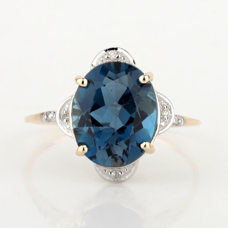 9CT YELLOW GOLD NATURAL LONDON BLUE TOPAZ & DIAMOND RING Weight Of The Item: 1.86 GFineness Of Metal(S): Yellow Gold 9KtThe Ring Consists Of (1) Oval Brilliant Natural London Blue Topaz. Surrounding The Main Stones Are Round Brilliant Cut Natural Diamonds.Identification: Natural London Blue TopazColor: BlueShape: Oval Brilliant CutNo. Of Stone: 1Dimension: 11 Mm X 9 Mm X 6.6 MmWeight: 4.4 CaratsCut: Very GoodIdentification: Natural DiamondShape: Round Brilliant CutWeight: 0.03 CtsCut: Excellent.Certificates Are Provided By Gemological Science International (Gsi), An Independent Third-Party Gemological Laboratory Based In The Usa And Recognised Among The Top 10 Gem Labs Globally Markings: 9ct Condition: Good - Refer Images 0488218+11