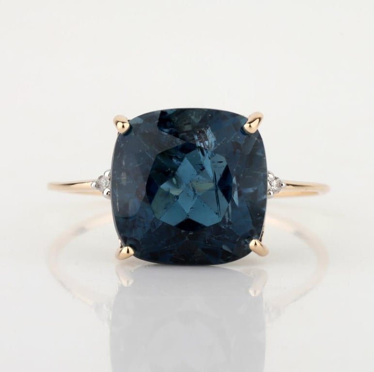 9CT YELLOW GOLD NATURAL LONDON BLUE TOPAZ & DIAMOND RING Weight Of The Item: 2 GFineness Of Metal(S): Yellow Gold 9KtThe Ring Consists Of (1) Cushion Brilliant Natural London Blue Topaz. Surrounding The Main Stones Are Round Brilliant Cut Natural Diamonds.Identification: Natural London Blue TopazColor: BlueShape: Cushion Brilliant CutNo. Of Stone: 1Dimension: 10 Mm X 10 Mm X 6 MmWeight: 5.7 CaratsCut: Very GoodIdentification: Natural DiamondShape: Round Brilliant CutWeight: 0.06 CtsCut: Excellent.Certificates Are Provided By Gemological Science International (Gsi), An Independent Third-Party Gemological Laboratory Based In The Usa And Recognised Among The Top 10 Gem Labs Globally Markings: 9ct Condition: Good - Refer Images 0488218+26
