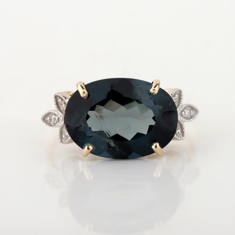 9CT YELLOW GOLD NATURAL LONDON BLUE TOPAZ & DIAMOND RING Weight Of The Item: 2.72 GFineness Of Metal(S): Yellow Gold 9KtThe Ring Consists Of (1) Oval Brilliant Natural London Blue Topaz. Surrounding The Main Stones Are Round Brilliant Cut Natural Diamonds.Identification: Natural London Blue TopazColor: BlueShape: Oval Brilliant CutNo. Of Stone: 1Dimension: 14 Mm X 10 Mm X 8.4 MmWeight: 6.2 CaratsCut: Very GoodIdentification: Natural DiamondShape: Round Brilliant CutWeight: 0.06 CtsCut: Excellent.Certificates Are Provided By Gemological Science International (Gsi), An Independent Third-Party Gemological Laboratory Based In The Usa And Recognised Among The Top 10 Gem Labs Globally Markings: 9ct Condition: Good - Refer Images 0488218+46